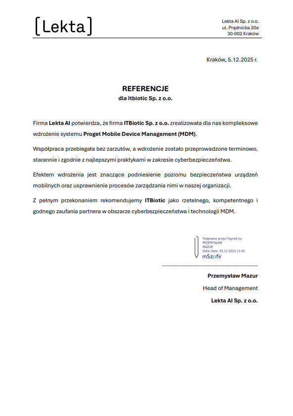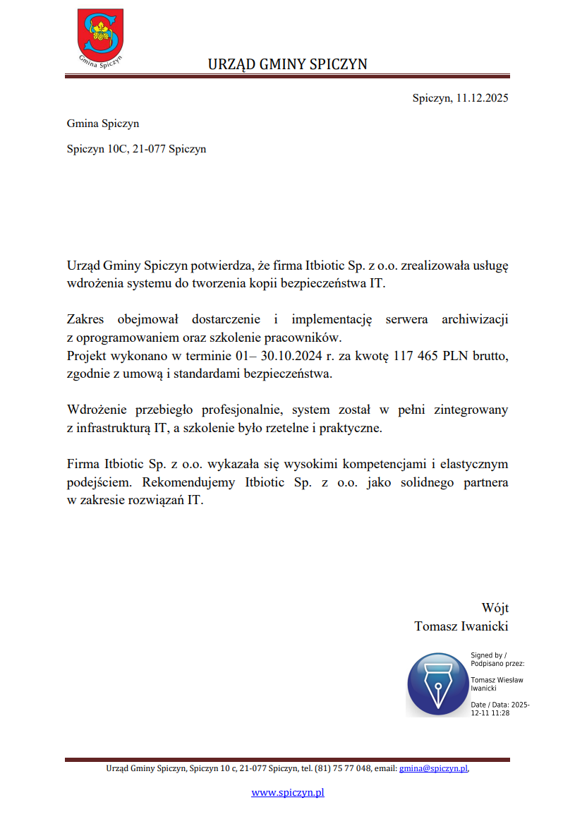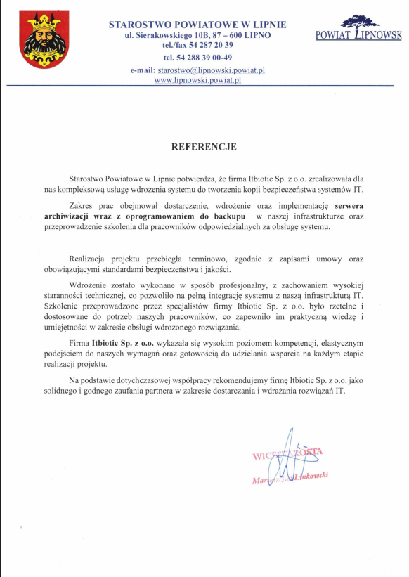 Poniżej prezentujemy wybrane listy referencyjne od naszych Klientów, którzy korzystali z naszych usług zarówno w ramach przetargów, projektów dofinansowywanych przez ministerstwa oraz od prywatnych przedsiębiorców, dla których realizowaliśmy wdrożenia, audyty oraz udzielaliśmy wsparcia merytorycznego.